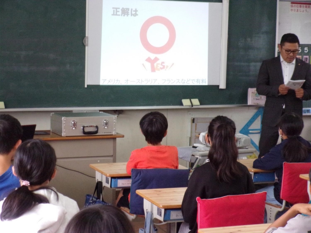 6月12日に、6年生を対象とした薬学講座を実施しました。スクールサポーター森田さん、学校薬剤師の太田さんに、お酒やたばこの断り方や、薬の正しい飲み方等について教えていただきました。