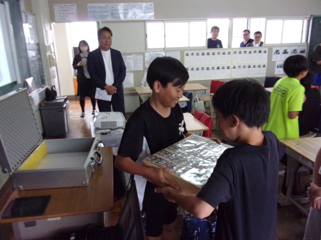 租税教室で税金についての学習をしました。税金の種類やどのように使われているのかを知ることができました。また、1億円がどのくらいの重さになるのかを体験するコーナーもありました。